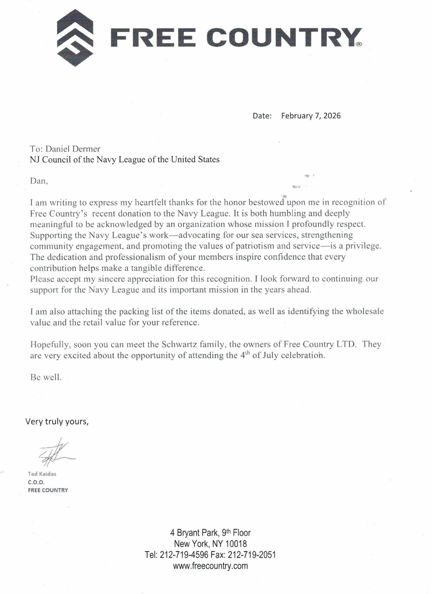 MASSIVE DONATION MADE BY FREE COUNTRY TO THE NJ COUNCIL